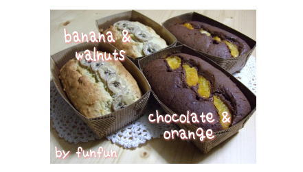 「バナナと胡桃のケーキ」と「チョコとオレンジのケーキ」