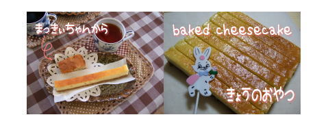 今日のおやつはベイクドチーズケーキ。